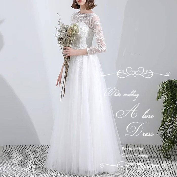 ウェディングドレス 長袖 袖あり 二次会 白 ウエディングドレス 前撮り 後撮りに シンプルaライン 花嫁ドレス Weddingdress Gcd 7007 Gcd 7007 グレースシトラスys 通販 Yahoo ショッピング